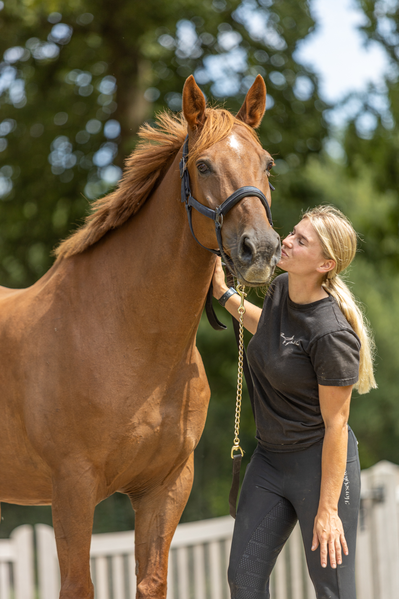 Ze is goed met voetjes geven, staat keurig bij de hoefsmid én op de poetsplaats. Ze is dol op aandacht, knuffels en uitgebreide poetsbeurten.